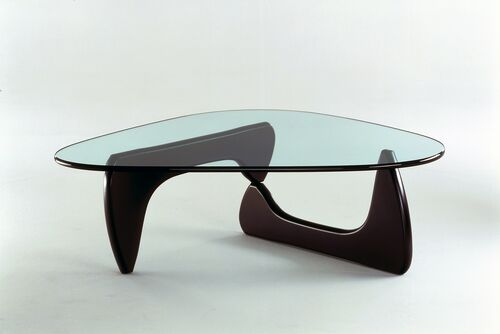Japanese American artist and designer Isamu Noguchi believed that “everything is sculpture.” In 1939, he designed a coffee table that merged sculpture with furniture. Released by Herman Miller in 1944, it features a freeform glass top supported by two interlocking wooden bases, influenced by Noguchi’s experience with biomorphic forms.