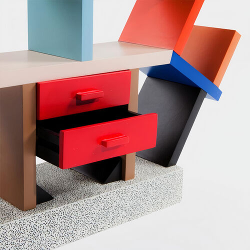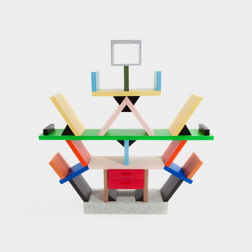 Italian postmodern designer Ettore Sottsass, founder of the Memphis Group, embraced color and playful forms. His Carlton Bookcase/Room Divider, created in 1981, features angular shelves and vivid colors, inviting various interpretations.