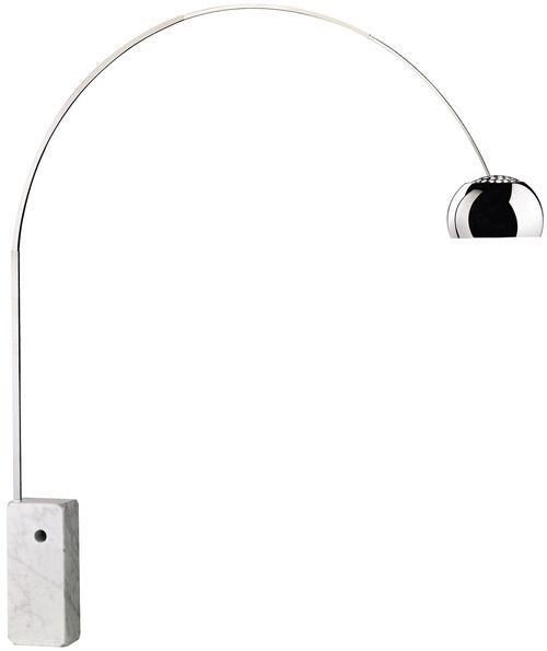 Italian brothers Achille and Pier Giacomo Castiglioni, trained as architects, designed the Arco Lamp in 1962, merging the functions of an overhead light and a standing lamp. Its Carrara marble base supports an arched stainless-steel arm, providing flexible lighting solutions.