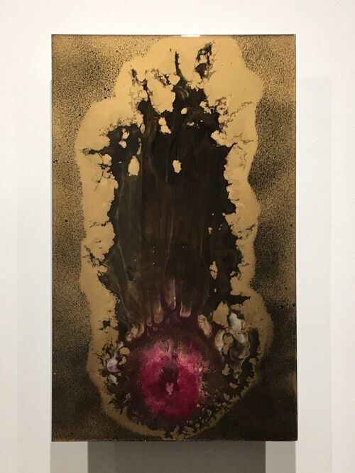 After being diagnosed with throat cancer in 2014, Kilmer overcame the illness but lost his voice. Following this, he focused more on painting, sharing with W Magazine in 2017 that he had a breakthrough as an artist when New York’s Woodward Gallery hosted his solo exhibition, “Valholla”. This show, a nod to both Norse mythology and Kilmer’s heritage, featured abstract paintings on metal sheets adorned with vibrant enamel splashes.